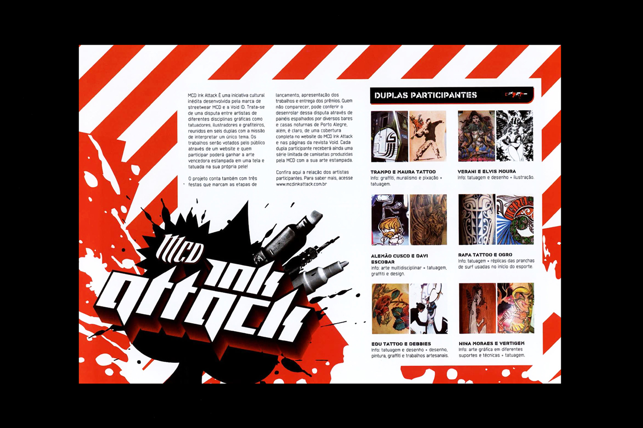 MCD Ink Attack foi uma disputa entre seis duplas formadas por um tatuador e um artista plástico, convidadas a interpretar graficamente o tema "kamikaze attack". Os resultados foram conhecidos através de eventos em casas noturnas de Porto Alegre, materiais gráficos, conteúdo editorial, divulgação online e de uma série limitada de camisetas. A arte da dupla Trampo e Maura foi a mais votada pelo público no website do projeto, garantindo a seus criadores uma premiação em dinheiro. Quem participou da votação, pôde concorrer a uma tela e uma tatuagem com o trabalho vencedor.